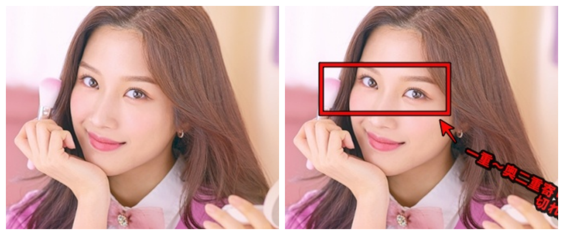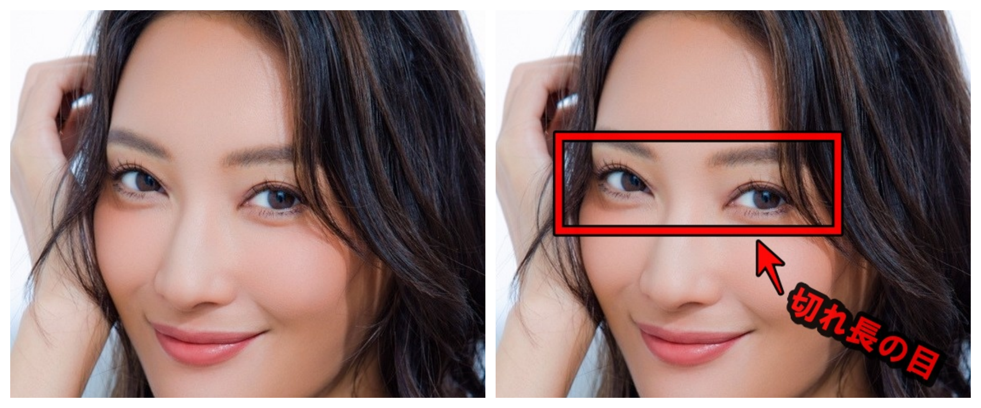 切れ長の目元:菜々緒さんの代名詞ともいえるシャープな目元でムン・ガヨンさんも一重〜奥二重寄りの切れ長で、アイラインが映えるタイプです。