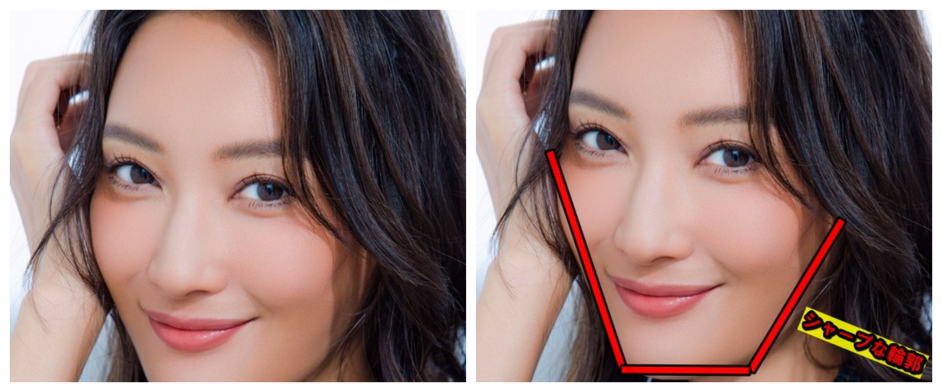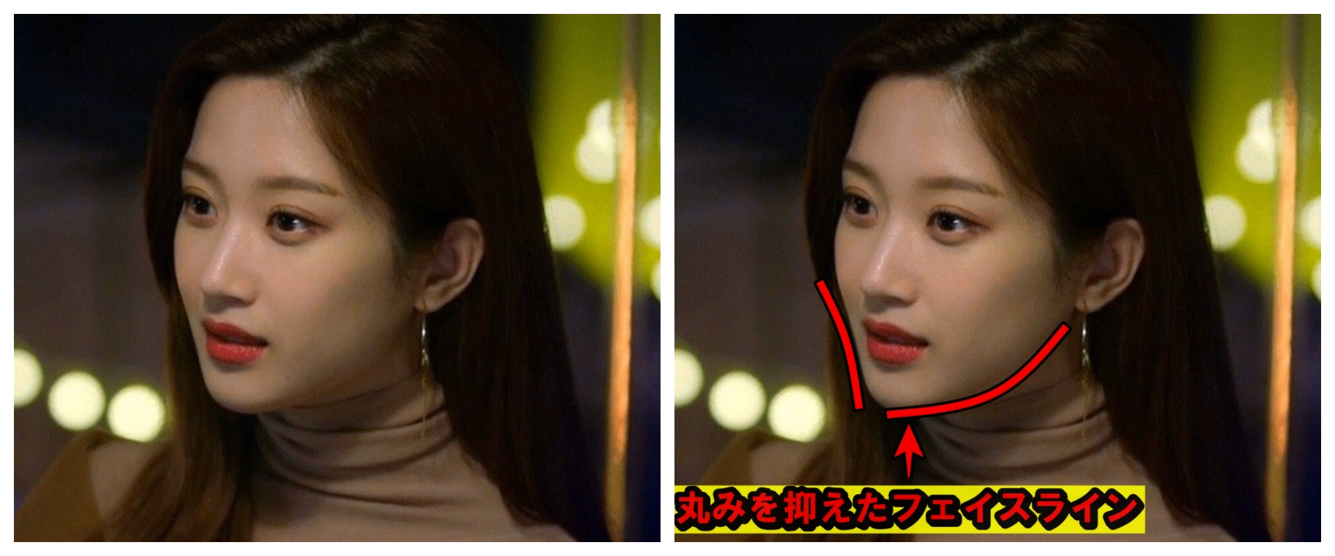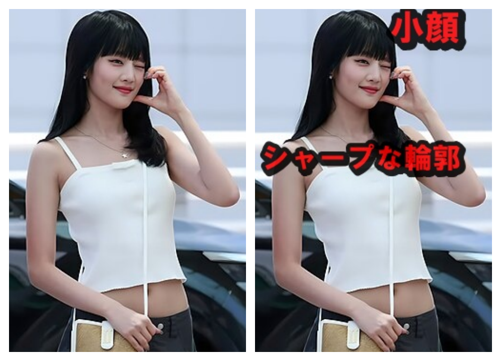 すっきりとした輪郭:菜々緒さんは顎ラインがシャープで小顔に対してムン・ガヨンさんも丸みを抑えたフェイスラインで、横顔が映える共通点がある。