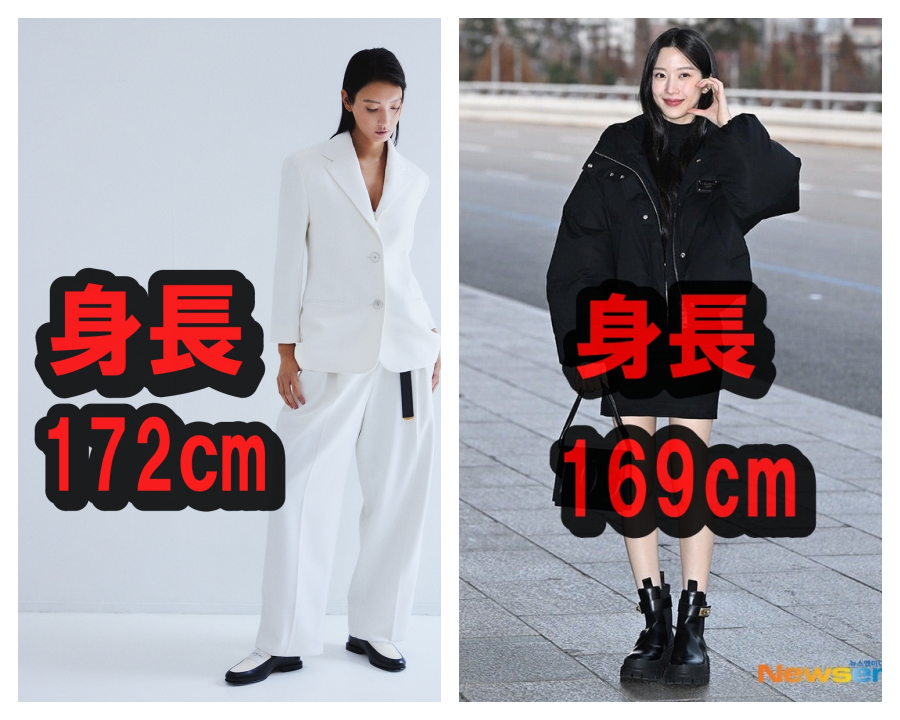 高身長&スレンダーな雰囲気:菜々緒さん:172cm、ムン・ガヨンさん:169cm。どちらもモデル系のスタイルを持ち、スラっとした佇まいが似ています。